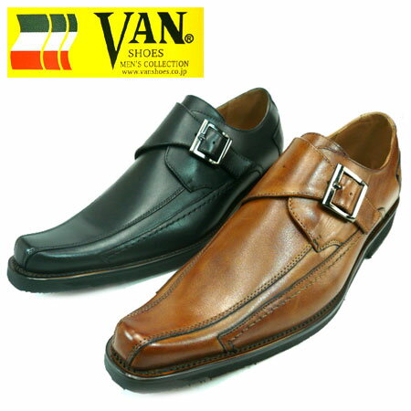 - 【送料無料】本革 メンズの人気ブランドVAN スワールライン&ロングノーズ・シングルモンクストラップの機能派ビジネスシューズ 通勤・リクルート・フォーマル用に最適です